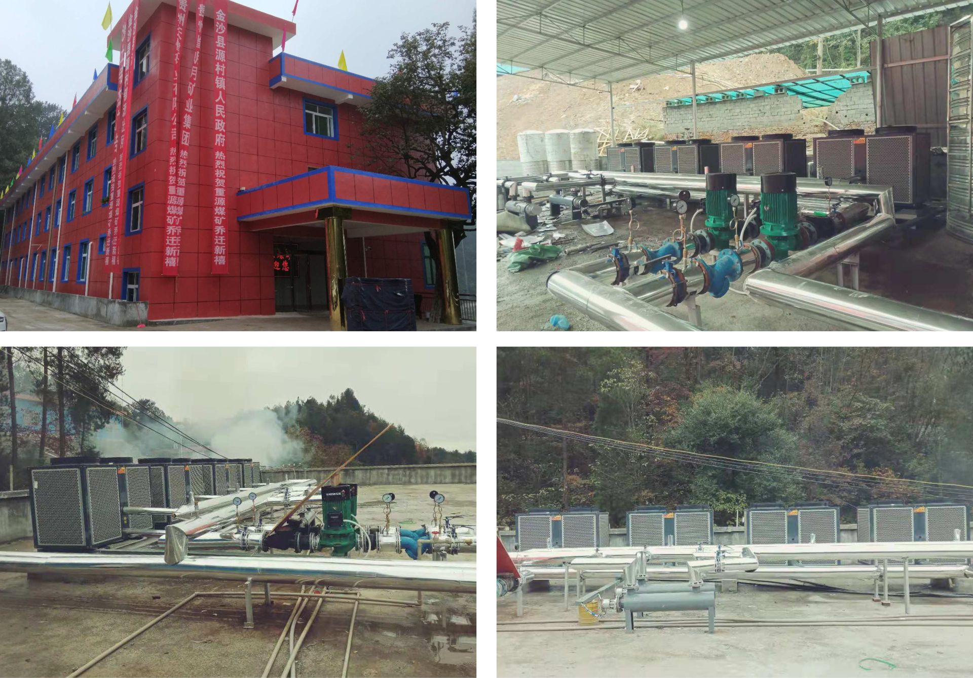 贵州省金沙重源煤矿该项目采用8台10P超低温热泵机组,可满足该煤矿的采暖需求。